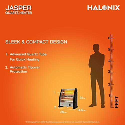 Halonix Jasper Quartz Room Heater- Stay warm and cosy with our Quartz Room Heater, a powerful and efficient heating solution designed for quick, reliable warmth in any room. Equipped with advanced quartz heating elements, this heater provides instant heat, making it ideal for those cold winter days. The heater operates silently, ensuring a peaceful environment without any disruptive noise, and is built with dual heat settings to allow you to adjust the warmth to your preference.
