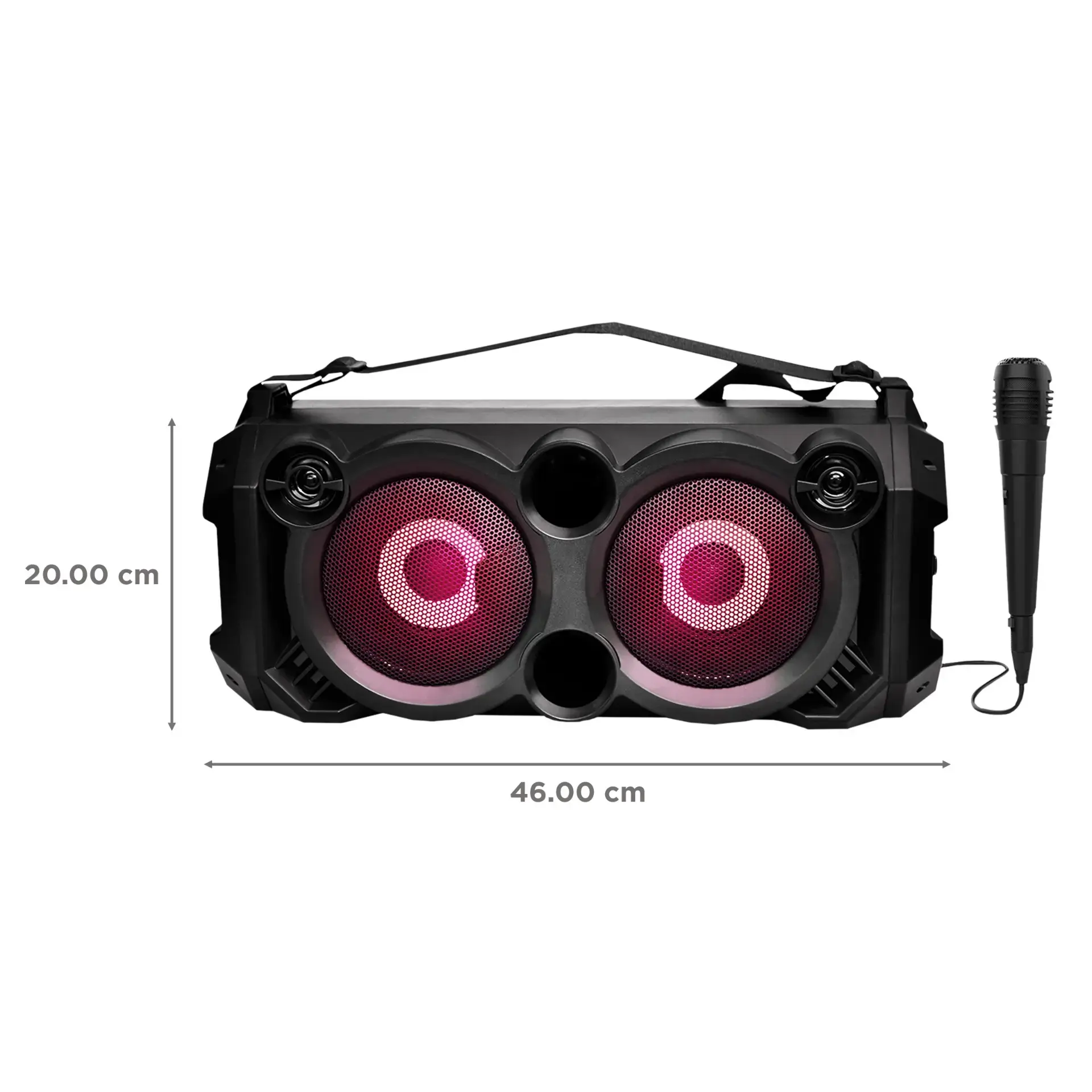 Party Speaker with In-Built Mic, 20W Sound, LED Lit, Microphone Jack for Karaoke, BT, Aux, USB, FM Radio