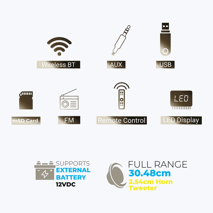 | Wireless BT/USB/ FM /AUX/MIC Input | |